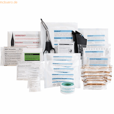 Sie können die einzelnen Komponenten der Füllung bei uns im Shop nachbestellen. So können Sie Ihre Erste-Hilfe-Ausrüstung jederzeit wieder auffüllen und sicherstellen, dass Sie im Notfall optimal vorbereitet sind.